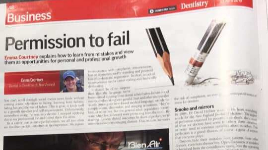 As featured in Dentistry Magazine 23 Apr 2019 You can’t scroll through social media news feeds without coming across references to failing. learning from failures, failing fast and the fear of failure. Which is great, it lends itself to a growth mindset and self improvement. Unfortunately, somewhere along the way as a dentist … Continue reading Permission to Fail
